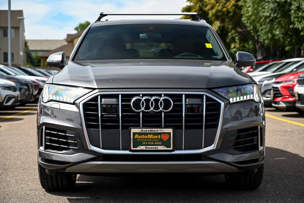 Q7 55 Prestige quattro, 4D Sport Utility, 3.0L TFSI V6 DOHC, 8-Speed Automatic with Tiptronic, quattro, Samurai Gray Metallic, Okapi Brown w/Leather Seating Surfaces or Valcona Leather Seat Trim, CLEAN CARFAX, APPLE/ANDROID CAR PLAY, BLUETOOTH, IPOD/USB ADAPTER, MP3, PUSH START ENGINE, REMOTE START, AWD, Audio Package, Backup Camera, Q7 55 Prestige quattro, 4D Sport Utility, 3.0L TFSI V6 DOHC, 8-Speed Automatic with Tiptronic, quattro, Samurai Gray Metallic, Okapi Brown w/Leather Seating Surfaces or Valcona Leather Seat Trim, 10 Speakers, 3-Spoke Multifunction Steering Wheel w/Paddles, 3D Bose Surround Sound System, 3rd row seats: bench, 4-Wheel Disc Brakes, ABS brakes, Air Conditioning, Alu Touch-Sensitive Interior Buttons, Auto High-beam Headlights, Automatic temperature control, Black Rubber All-Weather Floor Mats (Set of 4), Brake assist, Cold Weather Package, Comfort Adaptive Air Suspension, Convenience Package, Delay-off headlights, Driver Assistance Package, Dual-Pane Acoustic Side Windows, Electronic Stability Control, Emergency communication system: Audi connect CARE, PRIME & PLUS, Exterior Parking Camera Rear, Front Center Armrest, Front dual zone A/C, Front fog lights, Front reading lights, Garage door transmitter: HomeLink, Genuine wood door panel insert, Head-Up Display, Heated Front Bucket Seats, Heated front seats, Heated Rear Seats, Illuminated Door Sills, Illuminated entry, Leather Seating Surfaces, Leather Shift Knob, Leather steering wheel, Matrix-Design LED Headlights, Memory seat, Multicolor Contour/Ambient LED Interior Lighting Pkg, Navigation system: Audi MMI Navigation plus with Touch Response, Occupant sensing airbag, Outside temperature display, Overhead airbag, Overhead console, Passenger vanity mirror, Power moonroof, Power Liftgate, Power passenger seat, Power Soft-Closing Doors, Prestige Package, Radio data system, Radio: Audi Sound System, Rear fog lights, Rear window defroster, Reclining 3rd row seat, Remote keyless entry, Roof rack: rails only, Security system, Speed control, Split folding rear seat, Steering wheel memory, Steering wheel mounted audio controls, Telescoping steering wheel, Tilt steering wheel, Topview Camera System, Tow Hitch Receiver, Towing Package, Trip computer, Turn signal indicator mirrors, Warm Weather Package, Wheels: 20" 5-Spoke Turbine-Design, 3.204 Axle Ratio, AM/FM radio: SiriusXM, Audi smartphone interface (Apple CarPlay/Android Auto), Auto-dimming Rear-View mirror, Bumpers: body-color, Compass, Driver door bin, Driver vanity mirror, Dual front impact airbags, Dual front side impact airbags, Four wheel independent suspension, Front anti-roll bar, Front Bucket Seats, Fully automatic headlights, Heated door mirrors, Low tire pressure warning, Panic alarm, Passenger door bin, Power door mirrors, Power driver seat, Power steering, Power windows, PREMIUM WHEELS, Rain sensing wipers, Rear air conditioning, Rear anti-roll bar, Rear reading lights, Rear seat center armrest, Rear window wiper, Speed-sensing steering, Spoiler, Tachometer, Traction control, Variably intermittent wipers, Wheels: 19" 5-Arm Star Design, 10 Speakers, 3-Spoke Multifunction Steering Wheel w/Paddles, 3D Bose Surround Sound System, 3rd row seats: bench, 4-Wheel Disc Brakes, ABS brakes, Air Conditioning, Alu Touch-Sensitive Interior Buttons, Auto High-beam Headlights, Automatic temperature control, Black Rubber All-Weather Floor Mats (Set of 4), Brake assist, Cold Weather Package, Comfort Adaptive Air Suspension, Convenience Package, Delay-off headlights, Driver Assistance Package, Dual-Pane Acoustic Side Windows, Electronic Stability Control, Emergency communication system: Audi connect CARE, PRIME & PLUS, Exterior Parking Camera Rear, Front Center Armrest, Front dual zone A/C, Front fog lights, Front reading lights, Garage door transmitter: HomeLink, Genuine wood door panel insert,