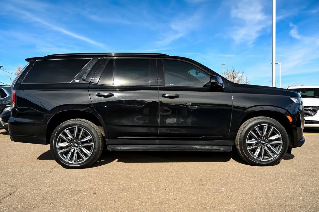 Escalade Sport, 4D Sport Utility, 6.2L V8, 10-Speed Automatic, AWD, Black Raven, Black Leather, CLEAN ONE OWNER CARFAX, APPLE/ANDROID CAR PLAY, BLUETOOTH, IPOD/USB ADAPTER, MP3, PUSH START ENGINE, REMOTE START, AWD, THIRD ROW SEATING, Audio Package, Backup Camera, Escalade Sport, 4D Sport Utility, 6.2L V8, 10-Speed Automatic, AWD, Black Raven, Black Leather, 16.9" Diagonal OLED Infotainment Screen, 19 Speakers, 3rd row seats: split-bench, Adaptive Cruise Control, AKG Studio 19-Speaker Audio System, AM/FM radio: SiriusXM with 360L, Apple CarPlay/Android Auto, Audio memory, Automatic Seat Belt Tightening, Body-Color Door Handles, Door Lock & Latch Shields, Electronic Limited-Slip Differential, Emergency communication system: OnStar and Cadillac connected services capable, Enhanced Automatic Emergency Braking, Enhanced Automatic Parking Assist, Exterior Parking Camera Rear, Glass Breakage Sensor, HD Radio, Heads-Up Display, Heated & Ventilated Driver & Front Passenger Seats, Heated Driver & Front Passenger Seats, Heated front seats, Heated rear seats, Heated steering wheel, Hitch Guidance w/Hitch View, Illuminated entry, Integrated Trailer Brake Controller, Leather Seating Surfaces w/Precision Perf Inserts, Navigation System, Power moonroof, Power Panoramic Tilt-Sliding Sunroof, Preferred Equipment Group 1SC, PREMIUM WHEELS, Radio data system, Radio: AM/FM w/Navigation, Rear Camera Mirror, Rear Camera Mirror Washer, Rear Cross Traffic Alert, Reconfigurable Full-Color Head-Up Display, Remote keyless entry, Reverse Automatic Braking, Running Board Assist Steps, Security system, SiriusXM w/360L, Smart Trailer Integration Indicator, Spoiler, Steering wheel memory, Steering wheel mounted audio controls, Super Cruise, Teen Driver, Theft-Deterrent Alarm System, Trailer Side Blind Zone Alert, Vehicle Inclination Sensor, Vehicle Interior Movement Sensor, Ventilated front seats, Wireless Apple CarPlay/Wireless Android Auto, 2-Presets Memory For Driver Seat Adjuster, 3.23 Axle Ratio, 4-Way Power Driver Lumbar Seat Adjuster, 4-Way Power Front Passenger Lumbar Seat Adjuster, 4-Wheel Disc Brakes, 8-Way Power Driver Seat Adjuster, 8-Way Power Front Passenger Seat Adjuster, ABS brakes, Adaptive suspension, Air Conditioning, Auto High-beam Headlights, Auto tilt-away steering wheel, Auto-dimming door mirrors, Auto-dimming Rear-View mirror, Automatic temperature control, Brake assist, Bumpers: body-color, Compass, Delay-off headlights, Driver door bin, Driver vanity mirror, Dual front impact airbags, Dual front side impact airbags, Electronic Stability Control, Four wheel independent suspension, Front anti-roll bar, Front Bucket Seats, Front Center Armrest w/Storage, Front dual zone A/C, Front reading lights, Fully automatic headlights, Garage door transmitter, Heated door mirrors, Low tire pressure warning, Magnetic Ride Control Suspension, Memory seat, Not Equipped w/2nd Row Express-Up Window Control, Occupant sensing airbag, Outside temperature display, Overhead airbag, Overhead console, Panic alarm, Passenger door bin, Passenger vanity mirror, Power door mirrors, Power driver seat, Power Liftgate, Power passenger seat, Power steering, Power windows, Rain sensing wipers, Rear air conditioning, Rear anti-roll bar, Rear reading lights, Rear Seat Entertainment System, Rear window defroster, Rear window wiper, Speed control, Split folding rear seat, Tachometer, Telescoping steering wheel, Tilt steering wheel, Traction control, Trip computer, Turn signal indicator mirrors, Variably intermittent wipers, Voltmeter, Wheels: 22" 12-Spoke Polished Alloy, 16.9" Diagonal OLED Infotainment Screen, 19 Speakers, 3rd row seats: split-bench, Adaptive Cruise Control, AKG Studio 19-Speaker Audio System, AM/FM radio: SiriusXM with 360L, Apple CarPlay/Android Auto, Audio memory, Automatic Seat Belt Tightening, Body-Color Door Handles, Door Lock & Latch Shields, Electronic Limited-Slip Dif