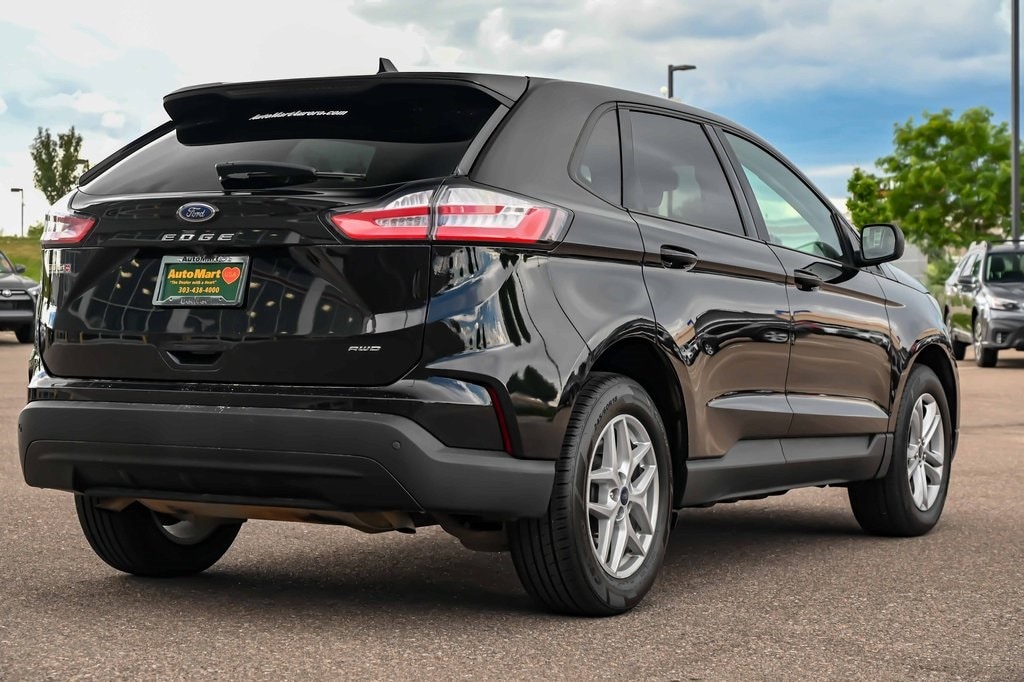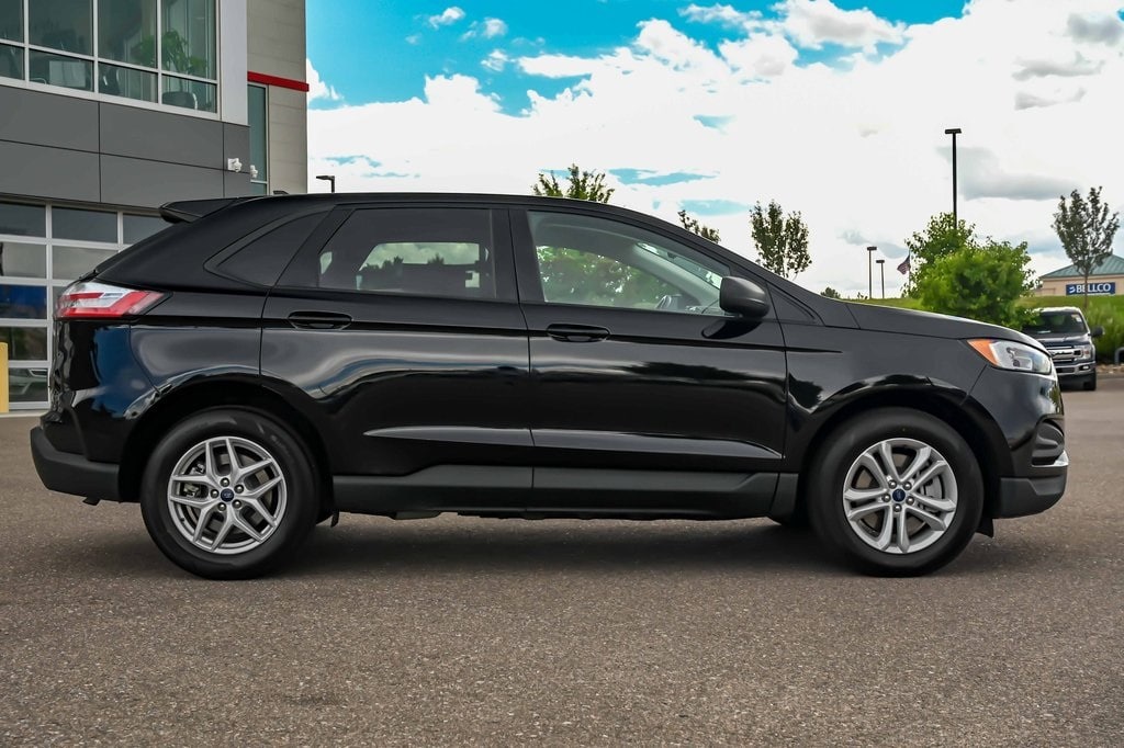Edge SE, 4D Sport Utility, EcoBoost 2.0L I4 GTDi DOHC Turbocharged VCT, 8-Speed Automatic, AWD, Agate Black Metallic, Ebony Cloth, CLEAN CARFAX, APPLE/ANDROID CAR PLAY, BLUETOOTH, IPOD/USB ADAPTER, MP3, PUSH START ENGINE, AWD, Audio Package, Backup Camera, Edge SE, 4D Sport Utility, EcoBoost 2.0L I4 GTDi DOHC Turbocharged VCT, 8-Speed Automatic, AWD, Agate Black Metallic, Ebony Cloth, 6 Speakers, AM/FM radio: SiriusXM with 360L, Emergency communication system: SYNC 4 911 Assist, Equipment Group 100A, FordPass Connect, Illuminated entry, PREMIUM WHEELS, Radio: AM/FM Stereo/MP3 Capable, Remote keyless entry, SiriusXM w/360L, Spoiler, Steering wheel mounted audio controls, SYNC 4A w/Enhanced Voice Recognition, 3.80 Axle Ratio, 4-Wheel Disc Brakes, ABS brakes, Air Conditioning, Auto High-beam Headlights, Automatic temperature control, Brake assist, Bumpers: body-color, Cloth Bucket Seats, Compass, Delay-off headlights, Driver door bin, Driver vanity mirror, Dual front impact airbags, Dual front side impact airbags, Electronic Stability Control, Four wheel independent suspension, Front anti-roll bar, Front Bucket Seats, Front Center Armrest w/Storage, Front dual zone A/C, Front reading lights, Fully automatic headlights, Knee airbag, Low tire pressure warning, Occupant sensing airbag, Outside temperature display, Overhead airbag, Overhead console, Panic alarm, Passenger door bin, Passenger vanity mirror, Power door mirrors, Power steering, Power windows, Rear anti-roll bar, Rear reading lights, Rear seat center armrest, Rear window defroster, Rear window wiper, Speed control, Speed-Sensitive Wipers, Split folding rear seat, Tachometer, Telescoping steering wheel, Tilt steering wheel, Traction control, Trip computer, Variably intermittent wipers, Wheels: 18" Sparkle Silver-Painted Aluminum, Wheels: 18" Split-Spoke Sparkle Silver-Painted, 6 Speakers, AM/FM radio: SiriusXM with 360L, Emergency communication system: SYNC 4 911 Assist, Equipment Group 100A, FordPass Connect, Illuminated entry, PREMIUM WHEELS, Radio: AM/FM Stereo/MP3 Capable, Remote keyless entry, SiriusXM w/360L, Spoiler, Steering wheel mounted audio controls, SYNC 4A w/Enhanced Voice Recognition.
