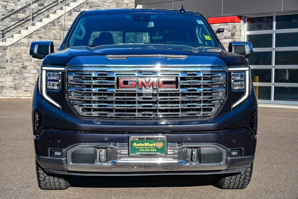 Sierra 1500 Denali, 4D Crew Cab, EcoTec3 5.3L V8, 10-Speed Automatic, 4WD, Titanium Rush Metallic, Jet Black w/Forge Perforated Leather Seat Trim, CLEAN ONE OWNER CARFAX, CLEAN CARFAX, APPLE/ANDROID CAR PLAY, BLUETOOTH, IPOD/USB ADAPTER, MP3, PUSH START ENGINE, REMOTE START, 4X4, Backup Camera, Sierra 1500 Denali, 4D Crew Cab, EcoTec3 5.3L V8, 10-Speed Automatic, 4WD, Titanium Rush Metallic, Jet Black w/Forge Perforated Leather Seat Trim, 10-Way Power Driver Seat Adjuster w/Lumbar, 10-Way Power Passenger Seat Adjuster w/Lumbar, 120-Volt Bed Mounted Power Outlet, 120-Volt Instrument Panel Power Outlet, 170 Amp Alternator, 2 Charge/Data USB Ports Inside Center Console, 2 Type-C Charge-Only Rear USB Ports, 2 USB Ports, 7 Speakers, Adaptive suspension, AM/FM radio: SiriusXM with 360L, Apple CarPlay/Android Auto, Auto High-beam Headlights, Auto-dimming Rear-View mirror, Auto-Locking Rear Differential, Automatic temperature control, Auxiliary External Transmission Oil Cooler, Bed View Camera, Chrome Header w/Signature Denali Chrome Grille, Chrome Recovery Hooks, Chrome Wheel To Wheel Assist Steps, Color-Keyed Carpeting Floor Covering, Compass, Deep-Tinted Glass, Delay-off headlights, Dual front side impact airbags, Electric Rear-Window Defogger, Electrical Steering Column Lock, Electronic Stability Control, Floor-Mounted Center Console, Forge Perforated Leather Seat Trim, Forward Collision Alert, Front Prem Floor Liners w/Removable Carpet Insert, Front Rainsensing Wipers, Fully automatic headlights, Garage door transmitter, Genuine wood console insert, Genuine wood dashboard insert, Genuine wood door panel insert, GMC Connected Access Capable, GMC MultiPro Power Steps, HD Surround Vision, Heated 2nd Row Outboard Seats, Heated Driver & Front Outboard Passenger Seating, Heated front seats, Heated Steering Wheel, Heavy-Duty Air Filter, Hill Descent Control, Hitch Guidance w/Hitch View, In-Vehicle Trailering App, Integrated Trailer Brake Controller, IntelliBeam Automatic High Beam On/Off, Keyless Open & Start, LED Cargo Area Lighting, Navigation System, Not Equipped w/Steering Column Lock, OnStar & GMC Connected Services Capable, Overhead airbag, Perimeter Lighting, Power Door Locks, Power Front Passenger Windows w/Express Up/Down, Power Front Windows w/Driver Express Up/Down, Power Rake & Telescoping Steering Column, Power Rear Windows w/Express Down, Power Sliding Rear Window w/Rear Defogger, Power Sunroof, Preferred Equipment Group 5SA, Premium Bose 7-Speaker Sound System, Push Button Start, Radio: Premium GMC Infotainment Audio System, Rear Cross Traffic Braking, Rear Pedestrian Detection, Rear Prem Floor Liners w/Removable Carpet Insert, Rear Wheelhouse Liners, Rear window defroster, Remote keyless entry, Remote Vehicle Starter System, SiriusXM w/360L, Split folding rear seat, Spray-On Pickup Bed Liner w/Denali Logo, Steering Wheel Audio Controls, Steering wheel mounted audio controls, Telescoping steering wheel, Theft Deterrent System (Unauthorized Entry), Trailer Camera Provisions, Trailer Side Blind Zone Alert, Trailering Package, Ultrasonic Front & Rear Park Assist, Universal Home Remote, Ventilated Driver & Front Passenger Seats, Wi-Fi Hotspot Capable, Wireless Charging, Wireless Phone Projection, 3 Years of OnStar Safety & Security, 3.23 Rear Axle Ratio, 4-Wheel Disc Brakes, ABS brakes, Air Conditioning, Auto-dimming door mirrors, Automatic Emergency Braking, Brake assist, Buckle to Drive, Bumpers: body-color, Denali Premium Suspension w/Adaptive Ride Control, Driver door bin, Driver Memory, Driver vanity mirror, Dual front impact airbags, Emergency communication system: OnStar and GMC Connected Services capable, Following Distance Indicator, Front anti-roll bar, Front Bucket Seats, Front Center Armrest, Front dual zone A/C, Front fog lights, Front License Plate Kit, Front Pedestrian Braking, Front reading lights, Front wheel inde