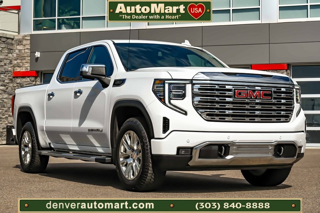 Sierra 1500 Denali, 4D Crew Cab, EcoTec3 5.3L V8, 10-Speed Automatic, 4WD, Summit White, Black Leather, CLEAN ONE OWNER CARFAX, APPLE/ANDROID CAR PLAY, BLUETOOTH, IPOD/USB ADAPTER, MP3, PUSH START ENGINE, REMOTE START, 4X4, Audio Package, Backup Camera, Sierra 1500 Denali, 4D Crew Cab, EcoTec3 5.3L V8, 10-Speed Automatic, 4WD, Summit White, Black Leather, 120-Volt Instrument Panel Power Outlet, 170 Amp Alternator, 2 Charge/Data USB Ports Inside Center Console, 2 Type-C Charge-Only Rear USB Ports, 2 USB Ports, 7 Speakers, AM/FM radio, Auto-Locking Rear Differential, Auxiliary External Transmission Oil Cooler, Bed View Camera, Chrome Header w/Signature Denali Chrome Grille, Chrome Recovery Hooks, Chrome Wheel To Wheel Assist Steps, Color-Keyed Carpeting Floor Covering, Compass, Deep-Tinted Glass, Electric Rear-Window Defogger, Electrical Steering Column Lock, Floor-Mounted Center Console, Front Rainsensing Wipers, GMC Connected Access Capable, HD Surround Vision, Heated 2nd Row Outboard Seats, Heated Driver & Front Outboard Passenger Seating, Heated front seats, Heated rear seats, Heated steering wheel, Heavy-Duty Air Filter, Hill Descent Control, Hitch Guidance w/Hitch View, Illuminated entry, In-Vehicle Trailering App, Integrated Trailer Brake Controller, IntelliBeam Automatic High Beam On/Off, Keyless Open & Start, Lane Keep Assist w/Lane Departure Warning, LED Cargo Area Lighting, Navigation System, OnStar & GMC Connected Services Capable, Perimeter Lighting, Power Door Locks, Power Front Passenger Windows w/Express Up/Down, Power Front Windows w/Driver Express Up/Down, Power passenger seat, Power Rake & Telescoping Steering Column, Power Rear Windows w/Express Down, Power Sliding Rear Window w/Rear Defogger, Power Sunroof, Preferred Equipment Group 5SA, Premium audio system: GMC Infotainment System, Premium Bose 7-Speaker Sound System, PREMIUM WHEELS, Push Button Start, Radio data system, Radio: Premium GMC Infotainment Audio System, Rear Cross Traffic Braking, Rear Pedestrian Detection, Rear Wheelhouse Liners, Remote Vehicle Starter System, Security system, SiriusXM w/360L, Spray-On Pickup Bed Liner w/Denali Logo, Steering Wheel Audio Controls, Steering wheel mounted audio controls, Theft Deterrent System (Unauthorized Entry), Trailer Camera Provisions, Trailer Side Blind Zone Alert, Trailering Package, Ultrasonic Front & Rear Park Assist, Universal Home Remote, Ventilated Driver & Front Passenger Seats, Wi-Fi Hotspot Capable, Wireless Charging, Wireless Phone Projection, 10-Way Power Driver Seat Adjuster w/Lumbar, 10-Way Power Passenger Seat Adjuster w/Lumbar, 120-Volt Bed Mounted Power Outlet, 3.23 Rear Axle Ratio, 4-Wheel Disc Brakes, ABS brakes, Adaptive suspension, Air Conditioning, Apple CarPlay/Android Auto, Auto High-beam Headlights, Auto-dimming door mirrors, Auto-dimming Rear-View mirror, Automatic Emergency Braking, Automatic temperature control, Brake assist, Buckle to Drive, Bumpers: body-color, Delay-off headlights, Denali Premium Suspension w/Adaptive Ride Control, Driver door bin, Driver Memory, Driver vanity mirror, Dual front impact airbags, Dual front side impact airbags, Electronic Stability Control, Emergency communication system: OnStar and GMC connected services capable, Following Distance Indicator, Forge Perforated Leather Seat Trim, Forward Collision Alert, Front anti-roll bar, Front Bucket Seats, Front Center Armrest, Front dual zone A/C, Front fog lights, Front License Plate Kit, Front Pedestrian Braking, Front reading lights, Front wheel independent suspension, Fully automatic headlights, Garage door transmitter, Genuine wood console insert, Genuine wood dashboard insert, Genuine wood door panel insert, Heated door mirrors, Hitch Guidance, Low tire pressure warning, Memory seat, Not Equipped w/Steering Column Lock, Occupant sensing airbag, Outside temperature display, Overhead airbag, Overhead console, Panic