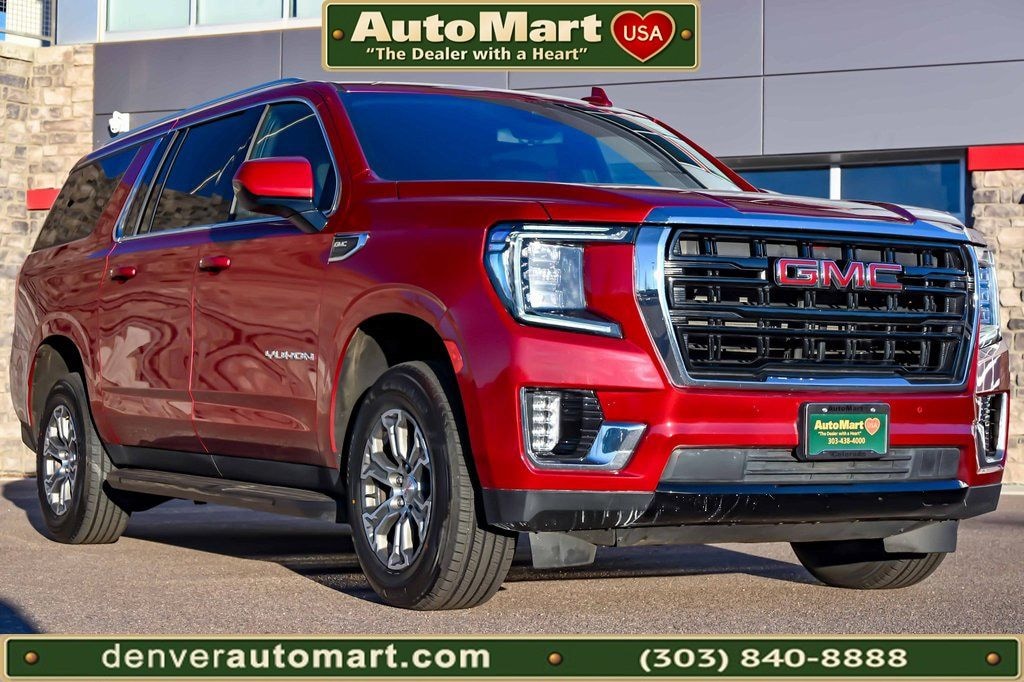 Yukon XL SLE, 4D Sport Utility, EcoTec3 5.3L V8, 10-Speed Automatic with Overdrive, 4WD, Volcanic Red Tintcoat, Black Cloth, CLEAN ONE OWNER CARFAX, CLEAN CARFAX, APPLE/ANDROID CAR PLAY, BLUETOOTH, IPOD/USB ADAPTER, MP3, PUSH START ENGINE, REMOTE START, 4X4, THIRD ROW SEATING, Audio Package, Backup Camera, Yukon XL SLE, 4D Sport Utility, EcoTec3 5.3L V8, 10-Speed Automatic with Overdrive, 4WD, Volcanic Red Tintcoat, Black Cloth, 3rd row seats: split-bench, 6 Speakers, 6-Speaker Audio System Feature, Air Conditioning, AM/FM radio: SiriusXM with 360L, Apple CarPlay/Android Auto, Auto High-beam Headlights, Automatic temperature control, Brake assist, Cloth Seat Trim, Delay-off headlights, Electronic Stability Control, Emergency communication system: OnStar and GMC connected services capable, Four wheel independent suspension, Front Center Armrest, Front dual zone A/C, Front reading lights, Fully automatic headlights, GMC Pro Safety Plus Package, Illuminated entry, Lane Change Alert w/Side Blind Zone Alert, Lane Departure Warning System, License Plate Front Mounting Package, Low tire pressure warning, Navigation System, Occupant sensing airbag, Overhead airbag, Power passenger seat, Preferred Equipment Group 3SA, Premium Smooth Ride Suspension, Rear Cross Traffic Alert, Rear window defroster, Remote keyless entry, SiriusXM w/360L, Split folding rear seat, Spoiler, Steering wheel mounted audio controls, Tachometer, Telescoping steering wheel, Traction control, 3.23 Rear Axle Ratio, 4-Wheel Disc Brakes, ABS brakes, AM/FM Stereo, Bumpers: body-color, Compass, Driver door bin, Driver vanity mirror, Dual front impact airbags, Dual front side impact airbags, Front anti-roll bar, Front Bucket Seats, Front fog lights, Heated door mirrors, Outside temperature display, Overhead console, Panic alarm, Passenger door bin, Passenger vanity mirror, Power door mirrors, Power driver seat, Power steering, Power windows, PREMIUM WHEELS, Rain sensing wipers, Rear air conditioning, Rear anti-roll bar, Rear reading lights, Rear seat center armrest, Rear window wiper, Roof rack: rails only, Security system, Speed control, Speed-sensing steering, Tilt steering wheel, Trip computer, Variably intermittent wipers, Voltmeter, Wheels: 18" x 8.5" 6-Spoke Machined Aluminum, 3rd row seats: split-bench, 6 Speakers, 6-Speaker Audio System Feature, Air Conditioning, AM/FM radio: SiriusXM with 360L, Apple CarPlay/Android Auto, Auto High-beam Headlights, Automatic temperature control, Brake assist, Cloth Seat Trim, Delay-off headlights, Electronic Stability Control, Emergency communication system: OnStar and GMC connected services capable, Four wheel independent suspension, Front Center Armrest, Front dual zone A/C, Front reading lights, Fully automatic headlights, GMC Pro Safety Plus Package, Illuminated entry, Lane Change Alert w/Side Blind Zone Alert, Lane Departure Warning System, License Plate Front Mounting Package, Low tire pressure warning, Navigation System, Occupant sensing airbag, Overhead airbag, Power passenger seat, Preferred Equipment Group 3SA, Premium Smooth Ride Suspension, Rear Cross Traffic Alert, Rear window defroster, Remote keyless entry, SiriusXM w/360L, Split folding rear seat, Spoiler, Steering wheel mounted audio controls, Tachometer, Telescoping steering wheel, Traction control.