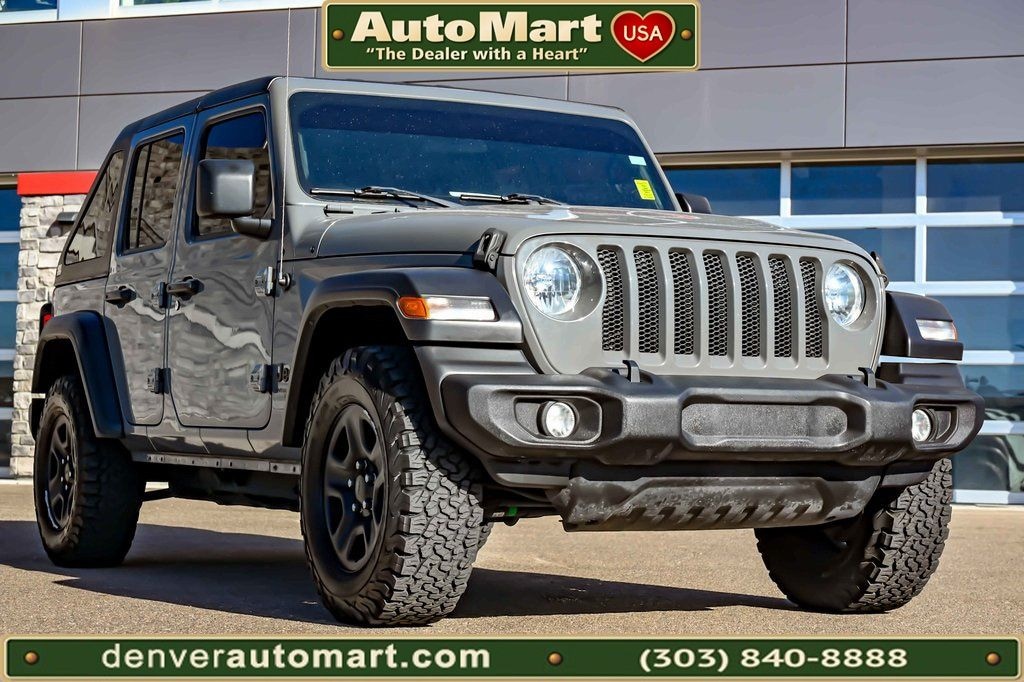 Wrangler Unlimited Sport, 4D Sport Utility, 3.6L V6 24V VVT, 6-Speed Manual, 4WD, Sting-Gray Clearcoat, Black w/Cloth Low-Back Bucket Seats, CLEAN ONE OWNER CARFAX, CLEAN CARFAX, APPLE/ANDROID CAR PLAY, BLUETOOTH, IPOD/USB ADAPTER, MP3, PUSH START ENGINE, 4X4, Backup Camera, Wrangler Unlimited Sport, 4D Sport Utility, 3.6L V6 24V VVT, 6-Speed Manual, 4WD, Sting-Gray Clearcoat, Black w/Cloth Low-Back Bucket Seats, 8 Speakers, Air Conditioning, AM/FM radio, Anti-Spin Differential Rear Axle, Brake assist, Cloth Low-Back Bucket Seats, Delay-off headlights, Dual front impact airbags, Dual front side impact airbags, Electronic Stability Control, Front fog lights, MOPAR All-Weather Floor Mats (DISC), Normal Duty Suspension, ParkView Rear Back-Up Camera, Power steering, Quick Order Package 23B Sport, Radio: Uconnect 3 w/5" Display, Speed control, Steering wheel mounted audio controls, Traction control, 3.45 Rear Axle Ratio, 4-Wheel Disc Brakes, ABS brakes, Aux Battery, Compass, Driver door bin, Driver vanity mirror, Front anti-roll bar, Front Bucket Seats, Front Center Armrest w/Storage, Front reading lights, Integrated roll-over protection, Low tire pressure warning, Non-Lock Fuel Cap w/o Discriminator, Occupant sensing airbag, Outside temperature display, Passenger door bin, Passenger vanity mirror, Radio data system, Rear anti-roll bar, Rear reading lights, Split folding rear seat, Stop-Start Dual Battery System, Tachometer, Telescoping steering wheel, Tilt steering wheel, Trip computer, Variably intermittent wipers, Wheels: 17" x 7.5" Black Steel Styled, 8 Speakers, Air Conditioning, AM/FM radio, Anti-Spin Differential Rear Axle, Brake assist, Cloth Low-Back Bucket Seats, Delay-off headlights, Dual front impact airbags, Dual front side impact airbags, Electronic Stability Control, Front fog lights, MOPAR All-Weather Floor Mats (DISC), Normal Duty Suspension, ParkView Rear Back-Up Camera, Power steering, Quick Order Package 23B Sport, Radio: Uconnect 3 w/5" Display, Speed control, Steering wheel mounted audio controls, Traction control.