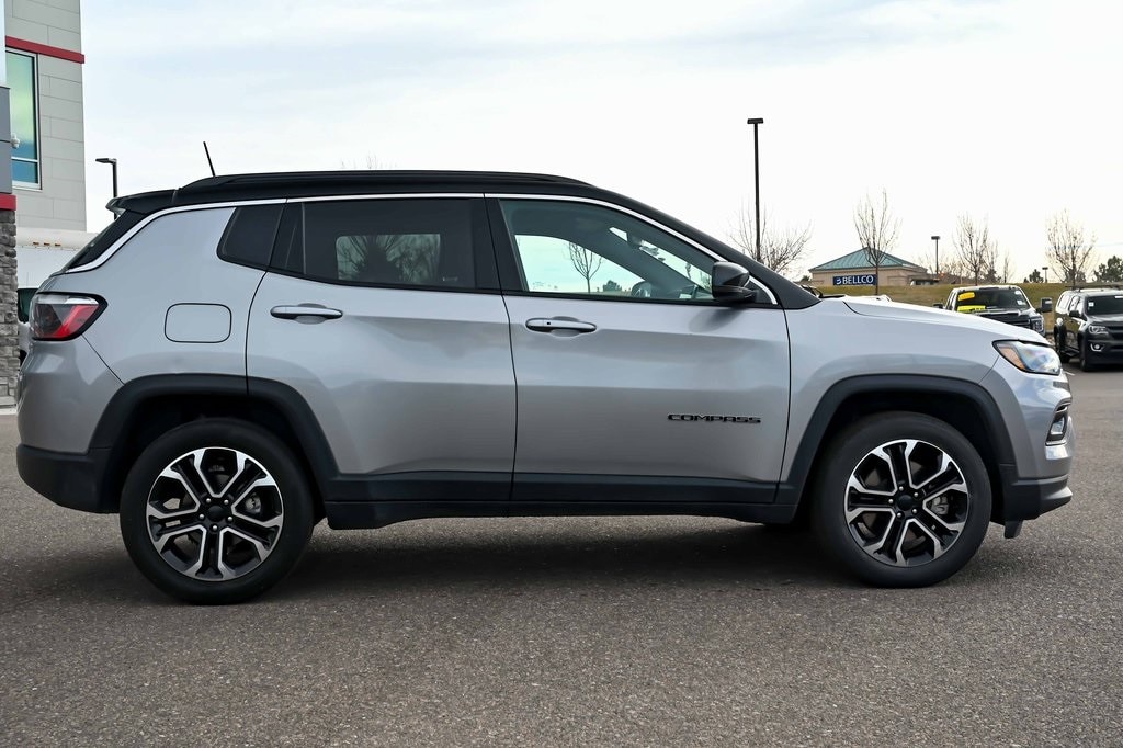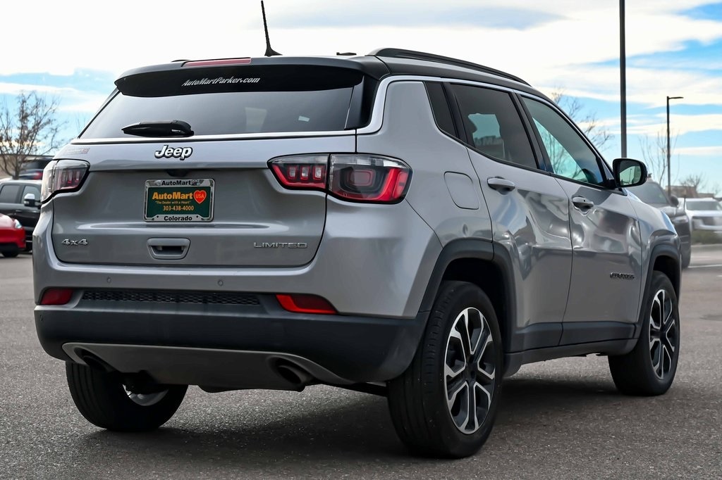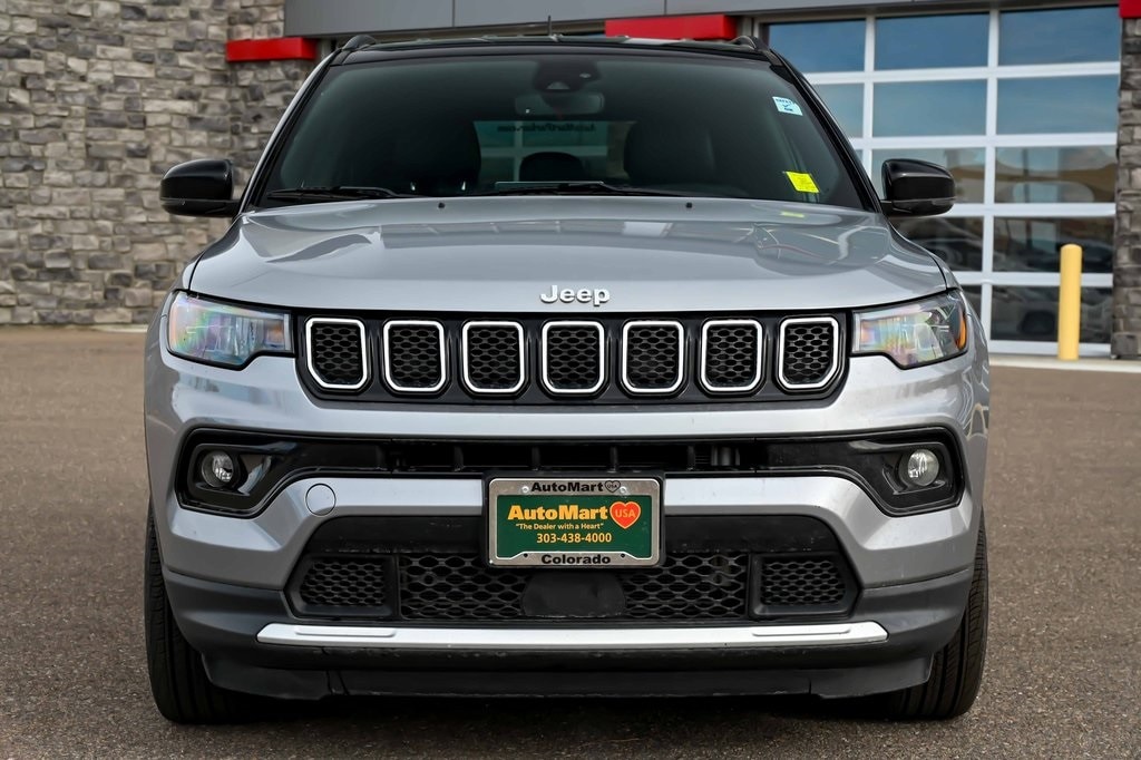 Compass Limited, 4D Sport Utility, 2.0L I4 DOHC, 8-Speed Automatic, 4WD, Billet Silver Metallic Clearcoat, Black Leather, CLEAN CARFAX, APPLE/ANDROID CAR PLAY, BLUETOOTH, IPOD/USB ADAPTER, MP3, PUSH START ENGINE, 4X4, Audio Package, Backup Camera, Compass Limited, 4D Sport Utility, 2.0L I4 DOHC, 8-Speed Automatic, 4WD, Billet Silver Metallic Clearcoat, Black Leather, 10.1" Touchscreen Display, 6 Speakers, AM/FM radio: SiriusXM, Heated steering wheel, Illuminated entry, Leatherette Seats, Navigation System, ParkView Rear Back-Up Camera, PREMIUM WHEELS, Quick Order Package 29G, Radio: Uconnect 5 w/10.1" Display, Remote keyless entry, Security system, SiriusXM Radio Service, Spoiler, Steering wheel mounted audio controls, 3.73 Final Drive Ratio, 4-Wheel Disc Brakes, ABS brakes, Air Conditioning, Auto High-beam Headlights, Auto-dimming Rear-View mirror, Automatic temperature control, Brake assist, Bumpers: body-color, Compass, Delay-off headlights, Disassociated Touchscreen Display, Driver door bin, Driver vanity mirror, Dual front impact airbags, Dual front side impact airbags, Electronic Stability Control, Four wheel independent suspension, Front anti-roll bar, Front Bucket Seats, Front Center Armrest w/Storage, Front dual zone A/C, Front fog lights, Front License Plate Bracket, Front reading lights, Fully automatic headlights, Heated door mirrors, Heated front seats, Hidden Exhaust Tips-Dual, Knee airbag, Leather Shift Knob, Low tire pressure warning, Occupant sensing airbag, Outside temperature display, Overhead airbag, Overhead console, Panic alarm, Passenger door bin, Passenger vanity mirror, Power door mirrors, Power driver seat, Power steering, Power windows, Rain sensing wipers, Rear anti-roll bar, Rear seat center armrest, Rear window defroster, Rear window wiper, Speed control, Split folding rear seat, Tachometer, Telescoping steering wheel, Tilt steering wheel, Traction control, Trip computer, Turn signal indicator mirrors, Variably intermittent wipers, Wheels: 18" x 7" Painted Diamond Cut Aluminum, 10.1" Touchscreen Display, 6 Speakers, AM/FM radio: SiriusXM, Heated steering wheel, Illuminated entry, Leatherette Seats, Navigation System, ParkView Rear Back-Up Camera, PREMIUM WHEELS, Quick Order Package 29G, Radio: Uconnect 5 w/10.1" Display, Remote keyless entry, Security system, SiriusXM Radio Service, Spoiler, Steering wheel mounted audio controls.