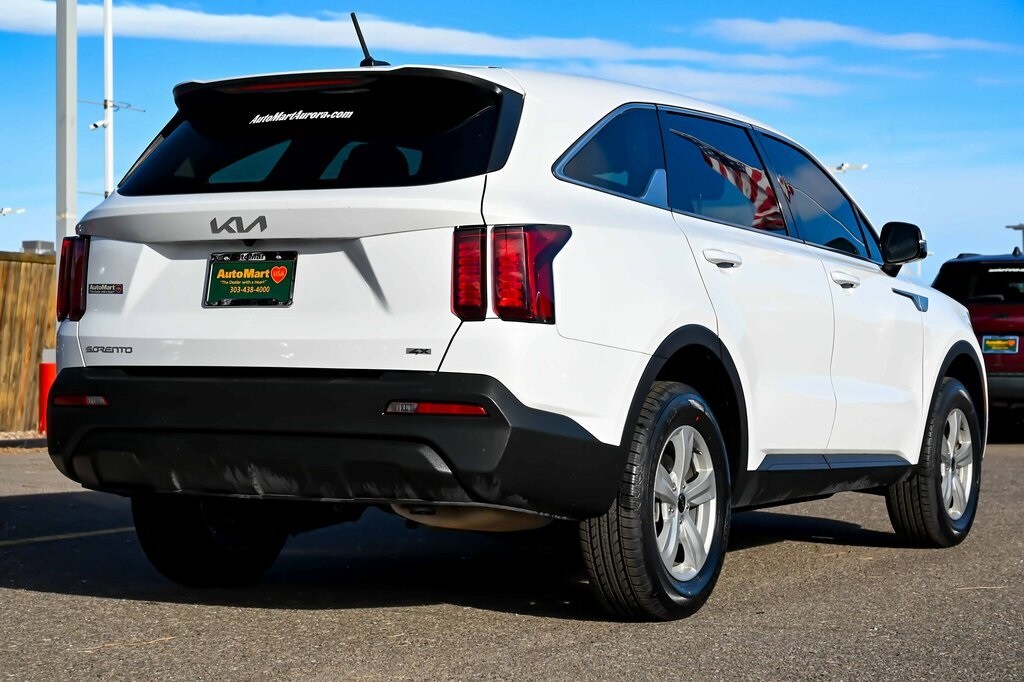 Sorento LX, 4D Sport Utility, 2.5L I4 DGI DOHC 16V LEV3-ULEV70 191hp, 8-Speed Automatic, AWD, Glacial White Pearl, Black w/Cloth Seat Trim, CLEAN ONE OWNER CARFAX, CLEAN CARFAX, APPLE/ANDROID CAR PLAY, BLUETOOTH, IPOD/USB ADAPTER, MP3, PUSH START ENGINE, AWD, Backup Camera, Sorento LX, 4D Sport Utility, 2.5L I4 DGI DOHC 16V LEV3-ULEV70 191hp, 8-Speed Automatic, AWD, Glacial White Pearl, Black w/Cloth Seat Trim, 3rd row seats: split-bench, 4-Wheel Disc Brakes, 6 Speakers, Apple CarPlay & Android Auto, Auto High-beam Headlights, Cloth Seat Trim, Delay-off headlights, Dual front impact airbags, Electronic Stability Control, Exterior Parking Camera Rear, Four wheel independent suspension, Front anti-roll bar, Fully automatic headlights, Outside temperature display, Power steering, Radio: AM/FM Audio System, Rear window defroster, Remote keyless entry, Steering wheel mounted audio controls, Traction control, Turn signal indicator mirrors, 4.081 Axle Ratio, 7.0J x 17" Alloy Wheels, ABS brakes, Air Conditioning, AM/FM radio, Brake assist, Bumpers: body-color, Cargo Net, Carpet Floor Mats, Driver door bin, Driver vanity mirror, Dual front side impact airbags, Front Bucket Seats, Front Center Armrest, Front reading lights, Heated door mirrors, Illuminated entry, Knee airbag, Low tire pressure warning, Occupant sensing airbag, Overhead airbag, Overhead console, Panic alarm, Passenger door bin, Passenger vanity mirror, Power door mirrors, Power windows, PREMIUM WHEELS, Radio data system, Rear anti-roll bar, Rear reading lights, Rear seat center armrest, Rear window wiper, Security system, Speed control, Speed-sensing steering, Split folding rear seat, Spoiler, Tachometer, Telescoping steering wheel, Tilt steering wheel, Trip computer, Variably intermittent wipers, 3rd row seats: split-bench, 4-Wheel Disc Brakes, 6 Speakers, Apple CarPlay & Android Auto, Auto High-beam Headlights, Cloth Seat Trim, Delay-off headlights, Dual front impact airbags, Electronic Stability Control, Exterior Parking Camera Rear, Four wheel independent suspension, Front anti-roll bar, Fully automatic headlights, Outside temperature display, Power steering, Radio: AM/FM Audio System, Rear window defroster, Remote keyless entry, Steering wheel mounted audio controls, Traction control, Turn signal indicator mirrors.