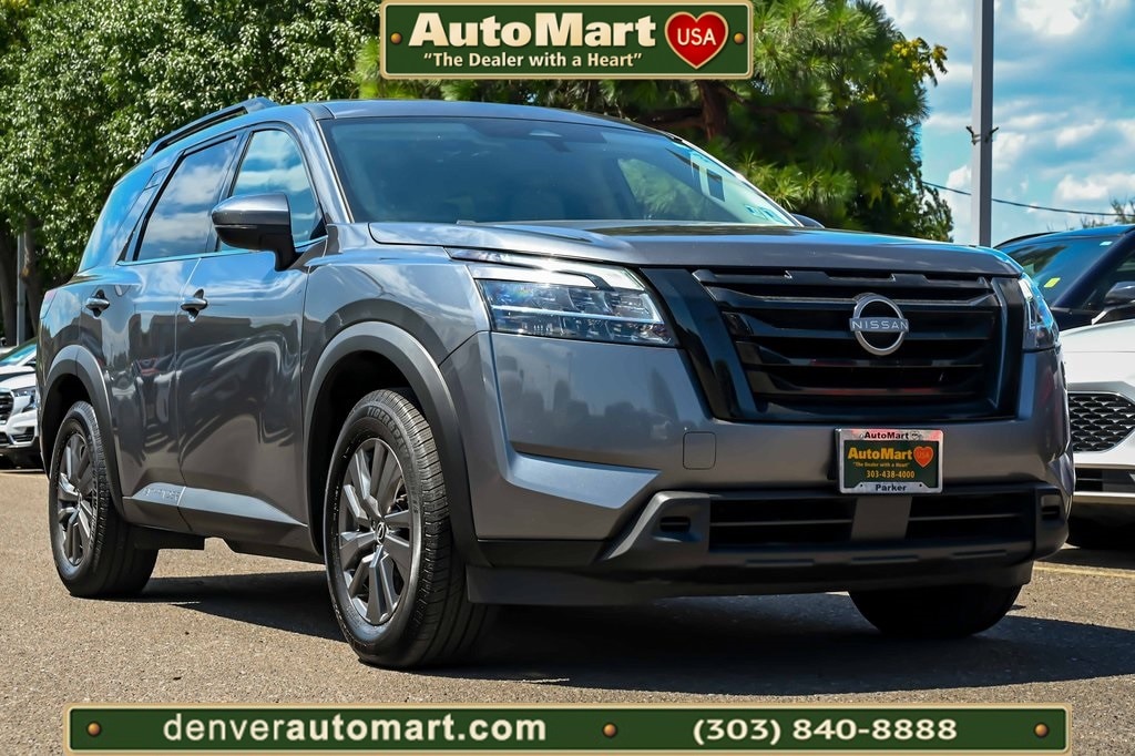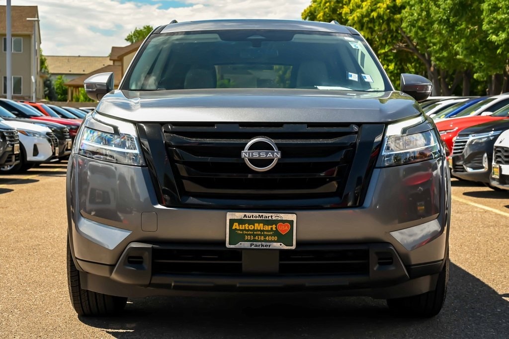 Pathfinder SV, 4D Sport Utility, V6, 9-Speed Automatic, 4WD, Gun Metallic, Gray Cloth, CLEAN CARFAX, APPLE/ANDROID CAR PLAY, BLUETOOTH, IPOD/USB ADAPTER, MP3, PUSH START ENGINE, 4X4, THIRD ROW SEATING, Audio Package, Backup Camera, Pathfinder SV, 4D Sport Utility, V6, 9-Speed Automatic, 4WD, Gun Metallic, Gray Cloth, 2nd-Row Captain Chairs, 2nd-Row Removable Center Console, 3rd row seats: bench, 4-Wheel Disc Brakes, 6 Speakers, ABS brakes, AM/FM radio: SiriusXM, Auto High-beam Headlights, Automatic temperature control, Black Badging, Black Grille, Brake assist, Delay-off headlights, Driver vanity mirror, Dual front side impact airbags, Electronic Stability Control, Emergency communication system: NissanConnect Services, Four wheel independent suspension, Front reading lights, Fully automatic headlights, Heated Front Bucket Seats, Heated front seats, Illuminated entry, Leather steering wheel, NissanConnect featuring Apple CarPlay and Android Auto, Panoramic Moonroof, Power Liftgate w/Position Memory, Radio: AM/FM Audio System w/NissanConnect, Rear Parking Sensors, Rear side impact airbag, Rear window defroster, Reclining 3rd row seat, Remote keyless entry, Speed-sensing steering, Split folding rear seat, Spoiler, Steering wheel mounted audio controls, SV Black Package, SV Premium Package, Tow Hitch Receiver & Harness, 18" Painted Alloy Wheels, Air Conditioning, Axle Ratio: TBD, Bumpers: body-color, Cloth Seating Surfaces, Driver door bin, Dual front impact airbags, Front anti-roll bar, Front Bucket Seats, Front Center Armrest, Front dual zone A/C, Heated door mirrors, Knee airbag, Low tire pressure warning, Occupant sensing airbag, Outside temperature display, Overhead airbag, Overhead console, Panic alarm, Passenger door bin, Passenger vanity mirror, Power door mirrors, Power driver seat, Power steering, Power windows, PREMIUM WHEELS, Radio data system, Rear air conditioning, Rear anti-roll bar, Rear reading lights, Rear seat center armrest, Rear window wiper, Security system, Speed control, Tachometer, Telescoping steering wheel, Tilt steering wheel, Traction control, Trip computer, Turn signal indicator mirrors, Variably intermittent wipers, 2nd-Row Captain Chairs, 2nd-Row Removable Center Console, 3rd row seats: bench, 4-Wheel Disc Brakes, 6 Speakers, ABS brakes, AM/FM radio: SiriusXM, Auto High-beam Headlights, Automatic temperature control, Black Badging, Black Grille, Brake assist, Delay-off headlights, Driver vanity mirror, Dual front side impact airbags, Electronic Stability Control, Emergency communication system: NissanConnect Services, Four wheel independent suspension, Front reading lights, Fully automatic headlights, Heated Front Bucket Seats, Heated front seats, Illuminated entry, Leather steering wheel, NissanConnect featuring Apple CarPlay and Android Auto, Panoramic Moonroof, Power Liftgate w/Position Memory, Radio: AM/FM Audio System w/NissanConnect, Rear Parking Sensors, Rear side impact airbag, Rear window defroster, Reclining 3rd row seat, Remote keyless entry, Speed-sensing steering, Split folding rear seat, Spoiler, Steering wheel mounted audio controls, SV Black Package, SV Premium Package, Tow Hitch Receiver & Harness.