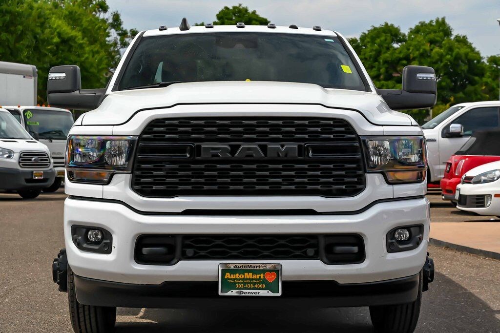 3500 Big Horn, 4D Crew Cab, 6.7L I6, Aisin 6-Speed Automatic, 4WD, Bright White Clearcoat, Black Cloth, CLEAN ONE OWNER CARFAX, CLEAN CARFAX, APPLE/ANDROID CAR PLAY, BLUETOOTH, IPOD/USB ADAPTER, 4X4, Audio Package, Backup Camera, 3500 Big Horn, 4D Crew Cab, 6.7L I6, Aisin 6-Speed Automatic, 4WD, Bright White Clearcoat, Black Cloth, 2nd Row In Floor Storage Bins, Adaptive Cruise Control w/Stop, Adaptive Steering System, Auto High Beam Headlamp Control, Auto Power-Folding Mirrors, Auto-Dimming Rear-View Mirror, Black Exterior Mirrors, Black Exterior Truck Badging, Black Headlamp Bezels, Black Interior Accents, Black RAM Head Tailgate Badge, Black Tail Lamp Bezels, Black Wheel Center Hub, Body Color Door Handles, Body Color Grille Surround, Center Hub, Dual Glove Boxes, Exterior Mirrors Courtesy Lamps, Exterior Mirrors w/Heating Element, Exterior Mirrors w/Supplemental Signals, Foam Bottle Insert (Door Trim Panel), Footwell Courtesy Lamp, Forward & Reverse Utility Lights, Front Fog Lamps, Full Speed Forward Collision Warning Plus, Gloss Black Nostrils/Molded in Color Black Grille, Glove Box Lamp, GPS Navigation, Heated Front Seats, Heated Seats & Wheel Group, Heated Steering Wheel, Lane Keep Assist, Leather Wrapped Steering Wheel, Level 1 Equipment Group, Locking Lower Glove Box, Mirror Running Lights, Night Edition, Painted Front Bumper, Painted Rear Bumper, Power Adjust Mirrors, Power Heated Fold Telescopic Mirrors, Power Telescoping Mirrors, Power-Adjustable Convex Aux Mirrors, Premium Cloth 40/20/40 Bench Seat, Quick Order Package 21Z Big Horn, Radio: Uconnect 5 w/8.4" Display, Rain Sensitive Windshield Wipers, Rear Dome w/On/Off Switch Lamp, Safety Group, Steering Wheel Mounted Audio Controls, Wheels: 18" x 8.0" Polished Aluminum, 12" Touchscreen Display, 2 Way Rear Headrest Seat, 220 Amp Alternator, 3.73 Axle Ratio, 4 Way Front Headrests, 4-Wheel Disc Brakes, 4.10 Axle Ratio, 40/20/40 Split Bench Seat, 4G LTE Wi-Fi Hot Spot, 50 Gallon Fuel Tank, 5th Wheel/Gooseneck Towing Prep Group, 6 Speakers, 6000# Front Axle w/Hub Ext, 8.4" Touchscreen Display, 9 Alpine Speakers w/Subwoofer, ABS brakes, Active Noise Control System, Air Conditioning, Air Conditioning ATC w/Dual Zone Control, Alexa Built-In, All R1 High Radios, All R1 Low Radios, All Radio Equipped Vehicles, Apple CarPlay, Blind Spot & Cross Path Detection, Bluetooth Handsfree Phone & Audio, Box & Rear Fender Clearance Lamps, Brake assist, Bumpers: chrome, Clearance Lamps, Cloth 40/20/40 Bench Seat, Compass, Connected Travel & Traffic Services, Connectivity - US/Canada, Delay-off headlights, Disassociated Touchscreen Display, Driver door bin, Dual front impact airbags, Dual front side impact airbags, Dual Rear Wheels, Electronic Stability Control, Electronically Controlled Throttle, Emergency communication system: SiriusXM Guardian, For Details Visit DriveUconnect.com, For More Info, Call 800-643-2112, Front anti-roll bar, Front Armrest w/Cupholders, Front Center Armrest w/Storage, Front Center Seat Cushion Storage, Front License Plate Bracket, Front reading lights, Front Seat Back Map Pockets, Fully automatic headlights, Global Telematics Box Module (TBM), Google Android Auto, GPS Antenna Input, HD Radio, Heated door mirrors, Illuminated entry, Integrated Center Stack Radio, Integrated Voice Command w/Bluetooth, LED Tail Lamps, Low tire pressure warning, Manual Adjust 4-Way Driver Seat, Manual Adjust 4-Way Front Passenger Seat, Manufacturer's Statement of Origin, MOPAR 30K Direct Mount 5th Wheel Hitch, MOPAR Front & Rear Rubber Floor Mats, MOPAR Spray In Bedliner, Occupant sensing airbag, Off-Road Information Pages, Outside temperature display, Overhead airbag, Overhead console, Panic alarm, ParkSense Front/Rear Park Assist System, ParkView Rear Back-Up Camera, Passenger door bin, Passenger vanity mirror, Power Adjust 8-Way Driver Seat, Power door mirrors, Power steering, Power windo