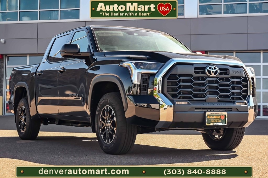 Tundra SR5, 4D CrewMax, 3.4L V6, 10-Speed Automatic, 4WD, Black, Gray Cloth, CLEAN ONE OWNER CARFAX, APPLE/ANDROID CAR PLAY, BLUETOOTH, IPOD/USB ADAPTER, MP3, PUSH START ENGINE, 4X4, Audio Package, Backup Camera, Tundra SR5, 4D CrewMax, 3.4L V6, 10-Speed Automatic, 4WD, Black, Gray Cloth, 9 Speakers, AM/FM radio: SiriusXM, Apple CarPlay/Android Auto, Emergency communication system: Safety Connect (10-year trial), Exterior Parking Camera Rear, Front & Rear Mud Guards, Heated Leather Steering Wheel, Illuminated entry, PREMIUM WHEELS, Radio data system, Radio: Audio Multimedia System, Remote keyless entry, Safety Connect, Security system, Steering wheel mounted audio controls, TRD Off-Road Package, 18" Alloy Wheels, 3.31 Axle Ratio, 4-Way Adjustable Front Bucket Seats, 4-Wheel Disc Brakes, ABS brakes, Air Conditioning, Auto High-beam Headlights, Automatic temperature control, Brake assist, Bumpers: body-color, Delay-off headlights, Driver door bin, Driver vanity mirror, Dual front impact airbags, Dual front side impact airbags, Electronic Stability Control, Fabric Seat Trim (FB), Front anti-roll bar, Front Bucket Seats, Front Center Armrest, Front fog lights, Front reading lights, Front wheel independent suspension, Fully automatic headlights, Heated door mirrors, Knee airbag, Low tire pressure warning, Occupant sensing airbag, Outside temperature display, Overhead airbag, Overhead console, Panic alarm, Passenger door bin, Passenger vanity mirror, Power door mirrors, Power steering, Power windows, Rear reading lights, Rear step bumper, Rear window defroster, Speed control, Speed-sensing steering, Split folding rear seat, Tachometer, Telescoping steering wheel, Tilt steering wheel, Traction control, Trip computer, Variably intermittent wipers, Voltmeter, 9 Speakers, AM/FM radio: SiriusXM, Apple CarPlay/Android Auto, Emergency communication system: Safety Connect (10-year trial), Exterior Parking Camera Rear, Front & Rear Mud Guards, Heated Leather Steering Wheel, Illuminated entry, PREMIUM WHEELS, Radio data system, Radio: Audio Multimedia System, Remote keyless entry, Safety Connect, Security system, Steering wheel mounted audio controls, TRD Off-Road Package.